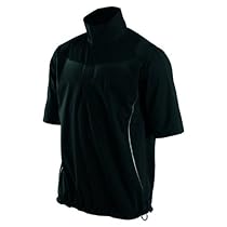 NIKE 333098-010-S Men's Storm-FIT Short-Sleeve Elite Golf Half-Zip Jacket - Black offers protection from the elements while stretch fabric and strategic design allow for maximum range of motion and breathability. This jacket is made with Nike Storm-FIT fabric to repel wind rain and snow so you stay dry and comfortable on the course. This half-zip jacket features a mock-neck a zip pocket on the back right side and a bungee cord with toggle at the hem. This golf jacket has bonded seams for waterproof protection and a no-sew technology to minimize chafing and overall weight. The Nike Swoosh trademark design is located on the back right shoulder. This short-sleeved jacket is made from 100 percent polyester and is machine washable. It comes with a limited lifetime guarantee to be waterproof windproof and breathable.